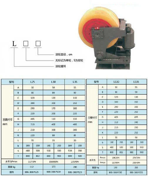 - 滾輪罐耳原理新型滾輪罐耳的工作原理:滾輪通過軸與擺架連接,擺架通過銷軸與支座及緩沖器與復(fù)合調(diào)整器連接,緩沖器與復(fù)合調(diào)整器4通過銷軸與擺架及支座連接,緩沖器與復(fù)合調(diào)整器由殼體Ⅰ和殼體Ⅱ、碟形彈簧、彈簧予緊力調(diào)整螺母、導(dǎo)桿共同組成,通過轉(zhuǎn)動(dòng)殼體Ⅱ可調(diào)整懸掛長度,從而調(diào)整滾輪位置,用鐵絲可鎖緊殼體Ⅰ、Ⅱ;調(diào)整螺母、調(diào)整工具孔用于插入棒狀工具以使螺紋相對(duì)轉(zhuǎn)動(dòng);懸掛孔用于與擺架和支座連接。滾輪罐耳以液壓緩沖器取代傳統(tǒng)的緩沖結(jié)構(gòu),承載能力大、運(yùn)行平穩(wěn)、可靠性高、壽命長、調(diào)整維修方便。 滾輪罐耳底座等零部件采用新型材料,整體結(jié)構(gòu)強(qiáng)度更高,抗沖擊性強(qiáng)。 緩沖器復(fù)位壓力小,可有效地避免滾輪與罐道產(chǎn)生異常碰撞。通過杠桿傳遞到減震筒上,同時(shí)起到導(dǎo)向、緩沖與穩(wěn)定作用。罐道與罐耳由滑動(dòng)摩擦變?yōu)闈L動(dòng)摩擦,因此減少了動(dòng)力消耗,降低了噪音,罐道和罐耳的磨損也大大降低。從而,提高了罐道和罐耳的使用壽命。滾輪罐耳標(biāo)準(zhǔn)【滾輪罐耳國標(biāo)標(biāo)準(zhǔn)】MT236-2011(國標(biāo)):本標(biāo)準(zhǔn)規(guī)定了矩形鋼雄道滾輪罐耳(以下簡稱滾輪罐耳) 的產(chǎn)品分類、技術(shù)要求、試驗(yàn)方法、檢驗(yàn) 規(guī)則、標(biāo)志、包裝、運(yùn)輸和貯存。 滾輪罐耳本標(biāo)準(zhǔn)適用于立井提升容器(箕斗、罐籠、平衡錘)沿矩形鋼罐道導(dǎo)向的滾輪罐耳。發(fā)布日期:2011-04-12 實(shí)施日期:2011-09-01 代替標(biāo)準(zhǔn):MT236-1991國家安全生產(chǎn)監(jiān)督管理總局公告2011年第13號(hào)引用標(biāo)準(zhǔn):GB/T 700;GB/T 985.1;GB/T 1184-1996;GB/T 1804-2000;GB/T 9286;GB/T 10111;JB/T 5000.3-2007;JB/T 5000.10;JB/T 5000.12-2007;MT/T 154.1;《煤礦安全規(guī)程》 國家安全生產(chǎn)監(jiān)管理總局、國家煤礦監(jiān)察局【滾輪罐耳現(xiàn)場評(píng)審必須具備的引用標(biāo)準(zhǔn)】GB/T1972 碟形彈簧GB/T1804 一般公差 未注公差的線性和角度尺寸的公差GB/T1184 形狀和位置公差 未注公差值MT113 煤礦井下用聚合物制品阻燃抗靜電性通用試驗(yàn)方法和判定規(guī)則熱銷型號(hào):L25滾輪罐耳L25滾輪罐耳-技術(shù)參數(shù):型號(hào): L25預(yù)緊力(kg): 300水平最大緩沖力(KN):12緩沖行程(mm): 13使用提升速度(m/s): 8-12L25滾輪罐耳-主要特點(diǎn):L25滾輪罐耳輪軸采用橡膠密封語機(jī)械密封相結(jié)合的組合密封方式,膠圈采用高耐磨材料,安全可靠,壽命長。1.支架擺動(dòng)銷軸裝有高分子耐磨軸套,使用中不產(chǎn)生松動(dòng)現(xiàn)象。2.緩沖裝置采用符合彈性體緩沖結(jié)構(gòu),性能穩(wěn)定,免維護(hù)。3.可用緩沖裝置來方便的調(diào)整滾輪與罐道間的位置。4.表面防范采用鍍鋅刷漆新工藝,防腐防銹性能好。滾輪罐耳由中間布置一個(gè),左右側(cè)各一個(gè)組成一組。滾輪罐耳可根據(jù)用戶要求進(jìn)行設(shè)計(jì)。滾輪罐耳-規(guī)格型號(hào)滾輪罐耳分為L系列單輪滾輪罐耳和LS雙輪滾輪罐耳。L系列單輪滾輪罐耳型號(hào)有:L25,L30,L35,L40,L45;LS系列雙輪滾輪罐耳型號(hào)有:LS30,LS35,LS40,LS45。