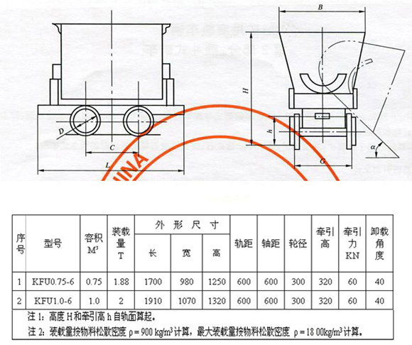 - 翻斗式礦車是煤礦中用量最大的運(yùn)輸設(shè)備之一,主要用于井上、井下運(yùn)輸煤、矸石、材料等,也可用于其它礦山或地下工程運(yùn)輸物料。一般由電機(jī)車、絞車牽引,具有耐沖擊,運(yùn)輸安全、可靠,大容積等特點(diǎn)。翻斗式礦車適用于煤炭、金屬、非金屬礦山或建筑工地,是用來運(yùn)輸碎塊狀等松散物料的運(yùn)輸車輛。如煤炭、礦石、渣石和石料等。其基本組成為:車廂、車架、緩沖器及行走機(jī)構(gòu)等組成,該KFU0.75-6型翻斗式礦車的主要形式結(jié)構(gòu)為:在由鋼板焊接而成的車廂兩端各裝設(shè)有一個(gè)弧形滾圈,支撐在車架的翻轉(zhuǎn)軌上,通過人力打開車廂的止動(dòng)裝置后,稍加外力便可使車廂向車體兩側(cè)任意翻轉(zhuǎn)進(jìn)行卸載,其卸載傾角可達(dá)40°以上。翻斗式礦車概述: KFU0.75-6型翻斗式礦車車箱斷面為V形或U形,支承在車架的翻轉(zhuǎn)軌上,車箱在翻轉(zhuǎn)軌上翻轉(zhuǎn)卸載。 翻斗式礦車分為大碰頭和小碰頭,大碰頭一般都是全錨的,而小碰頭一般都是焊接的。 翻斗式礦車主要型號(hào)包括:KFU0.55-6翻斗式礦車,KFU0.75-6型翻斗式礦車。 注:翻斗式礦車也可根據(jù)用戶要求,制做各式異型礦車。翻斗式礦車用途: KFU0.75-6型翻斗式礦車被廣泛用于煤礦、金礦、鐵礦、石膏礦等礦山行業(yè)。在礦山或建筑工地上,用來運(yùn)輸碎的塊狀物料,例如:礦石、煤炭、石頭等等。KFU0.75-6型翻斗式礦車特點(diǎn):1、翻斗式礦車結(jié)構(gòu)簡單,堅(jiān)固耐用,只要人力打開止動(dòng)板,就能很容易地卸下物料。2、翻斗式礦車相對(duì)來說自動(dòng)化程度很高,輪軸采用了滾柱軸承,有效地減少了運(yùn)行阻力,因此用機(jī)車或人力均能牽引或推動(dòng)。3、翻斗礦車不需用任何輔助設(shè)施,可左右自動(dòng)翻轉(zhuǎn),使用靈活、輕便。KFU0.75-6型翻斗式礦車的結(jié)構(gòu)組成:翻斗式礦車是由車箱、車架、緩沖碰頭、輪軸等組成。1、車箱:由箱板、端蓋、口邊角鋼等焊接組成。2、車架:由槽鋼、翻斗式礦車-角鋼、碰頭、軸卡等焊接組成。3、輪對(duì):由車輪、軸、軸承等組成。4、連接插銷:由Φ40mm優(yōu)質(zhì)碳結(jié)元鋼,手提環(huán)焊接組成。翻斗式礦車型號(hào)表示含義: 例:KFU0.75-6翻斗式礦車1、 K:表示煤礦車輛;2、 F:表示翻斗式礦車;3、 U:表示該車車箱的形狀;4、 0.75:表示該車的容積為0.75m³;5、 6:表示該車所使用的軌距為600mm。KFU0.75-6型翻斗式礦車保養(yǎng)與維護(hù)為保證礦車的正常行駛和延長使用壽命,需要每天檢查,每月維修,必須保證車輪無卡滯及不轉(zhuǎn)動(dòng)現(xiàn)象。 應(yīng)按照輪對(duì)的日常維護(hù)要求定期填加潤滑油,保證良好的潤滑,定期清除煤泥,及其它附屬物,保證足夠的容量;檢查防脫插銷是否有彎曲、裂紋等缺陷;檢查緊固件上的螺栓是否松動(dòng)等,防止發(fā)生意外。 此外還要隨時(shí)更換易損壞零配件。KFU0.75-6型翻斗式礦車注意事項(xiàng)1、使用過程中,礦車所受的負(fù)荷不準(zhǔn)超過規(guī)定的數(shù)值。2、聯(lián)接裝置發(fā)生故障時(shí)禁止工作。3、車架在震動(dòng)時(shí)剛性地沖撞輪軸,禁止在車底架與輪對(duì)有故障時(shí)使用以免損壞車軸。4、如發(fā)現(xiàn)插銷、三環(huán)鏈表面嚴(yán)重銹蝕或嚴(yán)重變形應(yīng)報(bào)廢。5、禁止礦車剛碰頭相互接觸。6、當(dāng)?shù)V車軌道變形時(shí)應(yīng)及時(shí)調(diào)整,否則礦車輪對(duì)易損,運(yùn)輸過程中容易跳道。KFU0.55-6型翻斗式礦車KFU0.55-6型翻斗式礦車是我公司是全國重要的礦車專業(yè)生產(chǎn)廠家之一,主要生產(chǎn)KFU0.55-6型翻斗式礦車0.55立方米、 0.75立方米、0.85立方米、1.1立方米V型翻斗式礦車,0.7立方米、1.1立方米、1.5立方米U型固定式礦車,0.7立方米、1.2立方米側(cè)卸式礦車及1.5噸、3噸底卸式礦車。KFU0.55-6型翻斗式礦車廣泛用于煤礦、金礦、鐵礦、石膏礦等礦山行業(yè),也可根據(jù)用戶要求,制做各式異型礦車,公司生產(chǎn)的 翻斗式礦車,堅(jiān)固耐用,使用靈活,深受廣大用戶好評(píng)。KFU0.55-6型翻斗式礦車的主要技術(shù)參數(shù):