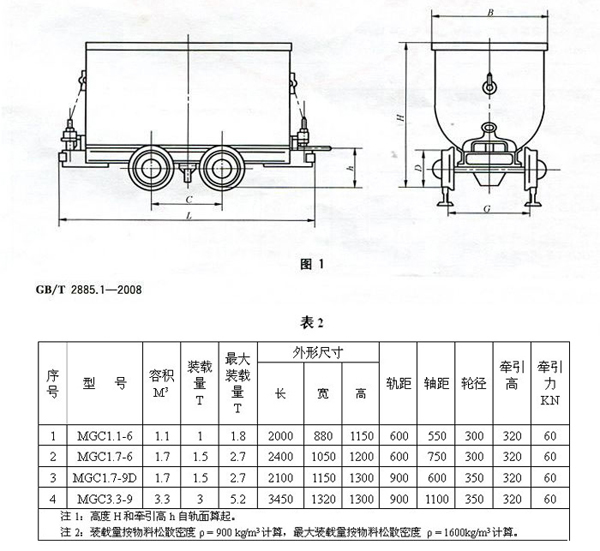 M----煤礦用車(chē)    G----固定式  C----車(chē)輛(車(chē))    1.1----車(chē)廂容積(m3) 6----600軌距。