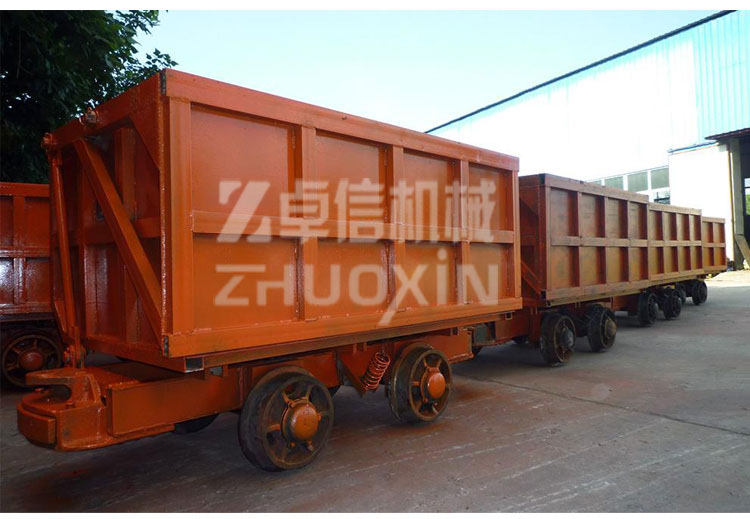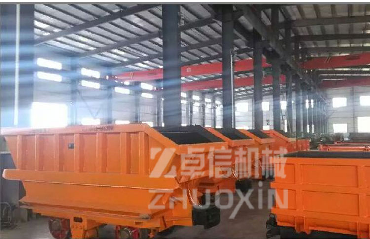 - 側(cè)卸式礦車主要適用于冶金、礦山巷道、煤礦、鐵路、公路遂道、水下涵洞、引水洞、導(dǎo)流洞、涵洞等隧道井巷工程掘進(jìn)、施工、配套簡單、高效率出渣運(yùn)輸設(shè)備。側(cè)卸式礦車由牽引車、絞車帶動,可與鑿巖鉆、立爪裝巖機(jī)和礦石溜開閘門放料系統(tǒng)配套結(jié)合裝料,礦石塊度不超過600毫米,根據(jù)礦車的負(fù)載容積,裝料后經(jīng)牽引動力引至(運(yùn)行速度不超過1m/秒)專用曲軌卸料器。當(dāng)車箱翻至水平成最大卸料角度時,車門也開到最大程序。這時礦車卸料以全部完成。返回時,礦車通過曲軌門又自動關(guān)閉到位。側(cè)卸式礦車、曲軌側(cè)卸式礦車、側(cè)翻式礦車容量有2立方、3立方、4立方、6立方、8立方的容積。側(cè)卸式礦車是一種高效、自卸載的運(yùn)輸設(shè)備,本身無能力,需與牽引機(jī)車或提升絞車配套使用。該車適用于礦山、隧道、工程建設(shè)等部門的坑道、室內(nèi)和露天軌道運(yùn)輸作業(yè),軌距為600mm、762mm、900mm三種,供用戶選擇。該車適宜裝載塊度在500mm以上的礦巖和砂土,裝載塊狀物料時,其自由跌落高度應(yīng)小于1m(距車箱頂面)。側(cè)卸式礦車是代替最古老式的翻斗式礦車的礦山運(yùn)輸工具,它綜合了它的簡單又方便,加大了它的貯存量,重量輕不笨重交靈活,簡單也就毛病少,特點(diǎn)是能自卸料。由軌道牽引機(jī)車或卷揚(yáng)機(jī)牽引行走,只能在卸載處做好的曲軌卸載平臺上,向設(shè)定的一面卸載。在車廂的一側(cè)用較軸與車架相連,另一側(cè)箱門上裝有卸載輥輪。卸載時,當(dāng)輥輪沿曲軌斜坡過渡裝置在卸載曲軌上坡段的上行,致使車廂傾斜,活動側(cè)門繞銷軸轉(zhuǎn)動被拉開而開始卸載。當(dāng)輥輪沿傾斜卸載曲軌下坡運(yùn)行,車廂靠自生重量自動下降復(fù)位到關(guān)閉側(cè)門。要注意的是當(dāng)側(cè)曲軌側(cè)卸式礦車從井底提升到卸載平臺時,提升卷揚(yáng)機(jī)要放慢速度上斜坡卸載平臺,使其平穩(wěn)卸載。中煤集團(tuán)生產(chǎn)的單側(cè)曲軌側(cè)卸式礦車的優(yōu)點(diǎn)是比翻斗式礦車和固定式礦車容積更大,自動平穩(wěn)卸載,由于這種卸載方式自身的特點(diǎn),曲軌卸載空間小,一般只要5.2米長,卸載傾角 仍可達(dá)到55度,有效的節(jié)省了井巷的開拓空間和縮小了硐室尺寸。卸載距離短,煤倉和車場的掘進(jìn)體積只有其它礦車的三分之一;由于卸載曲軌是對稱的,可實(shí)現(xiàn)側(cè)卸式礦車的雙向進(jìn)行卸載。側(cè)卸式礦車適用范圍側(cè)卸式礦車適用于井下或地面開采的金屬礦山(或礦石性質(zhì)及開采方式與其相類似的其他礦山)沿地下巷道及地面工作場地運(yùn)輸?shù)V石或其他物類。本礦車與其它底卸式礦車相比,具有運(yùn)行平穩(wěn),對電機(jī)車和牽引車沖擊力小,因此,可延長其使用壽命。該車堅(jiān)固耐用,維修方便,可雙向卸載,卸載速度高等。側(cè)卸式礦車結(jié)構(gòu)組成側(cè)卸式礦車有以下部件組成:1.車箱、2.車底架、3.輪軸、4.卸載輪、5.支撐彈簧、6.緩沖橡膠彈簧與碰頭等組成。其中車箱與車底架的聯(lián)接采用鉸鏈形式,使礦車在過卸載站時能開啟一定的角度以便礦石能順利卸下。31、車箱的前、后端板和側(cè)板均采用12mm厚的16Mn板焊接而成,在車箱四周外側(cè)采用槽形鋼板加固;翼板分別焊接在左、右側(cè)板上,上方用角鋼焊接成口字形,而且角鋼上方 和槽形鋼板相連,以便能使車箱在極端惡劣的工作環(huán)境下也不致于損壞。2、車底架。底板采用25mm厚的鋼板,在底板下面用角鋼和鋼板焊接,使底板足以能經(jīng)受住裝礦時礦石對底板的沖擊力。3、輪軸。輪軸由車軸、車輪和橡膠彈簧座組成。4、卸載輪。礦車卸礦時用,當(dāng)?shù)V車過卸載站時,卸載輪便開始工作,它沿曲軌滾動從而使礦車底板打開,卸完礦石后再使底板閉合,重新回復(fù)到裝礦狀態(tài)。5、緩沖橡膠彈簧與碰頭。緩沖與碰頭安裝在礦車兩頭,主要由緩沖橡膠彈簧、碰頭、插銷和單環(huán)鏈組成。它能使礦車之間緩和并削減沖擊力,延長車輛使用壽命。6、支撐彈簧。側(cè)卸式礦車相關(guān)參數(shù)容積:1.6m3軌距:600軸距:800C輪徑:350D牽引高度:320h額定牽引力:60KN卸載角:≥42°裝載量:4000KG外型尺寸:(長*寬*高)2500*1200*1300。側(cè)卸式礦車售后服務(wù)及交付說明1、側(cè)卸式礦車性價比說明:同產(chǎn)品質(zhì)量條件下,我公司不以降低性能、更改產(chǎn)品零部件為代價,給出最低最實(shí)在的價格。(可根據(jù)客戶要求進(jìn)行產(chǎn)品的生產(chǎn)配置)2、側(cè)卸式礦車交貨說明:按供貨期交貨,若有特殊情況,需提前交貨的,我公司在有限的范圍內(nèi)將會組織人員加大生產(chǎn)力度、實(shí)行生產(chǎn),安裝,調(diào)試,包裝等工藝,力求滿足貴公司要求.3.側(cè)卸式礦車售后服務(wù)范圍:產(chǎn)品保修期為1年,在保修期內(nèi)產(chǎn)品屬質(zhì)量問題的我公司給予最快捷的維修,無任何費(fèi)用,在保修期外需要更換零部件的,我公司只收取成本.山東卓信機(jī)械(官網(wǎng)http://www.jnzhuoxin.com)秉承山東人的豪爽與實(shí)誠,誠邀各位專家、領(lǐng)導(dǎo)來我公司考察、指導(dǎo)、賜教并期盼與您真誠合作,“追求卓越”永遠(yuǎn)是我們的主題,我們將勵精圖治,再創(chuàng)高效