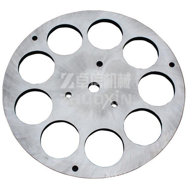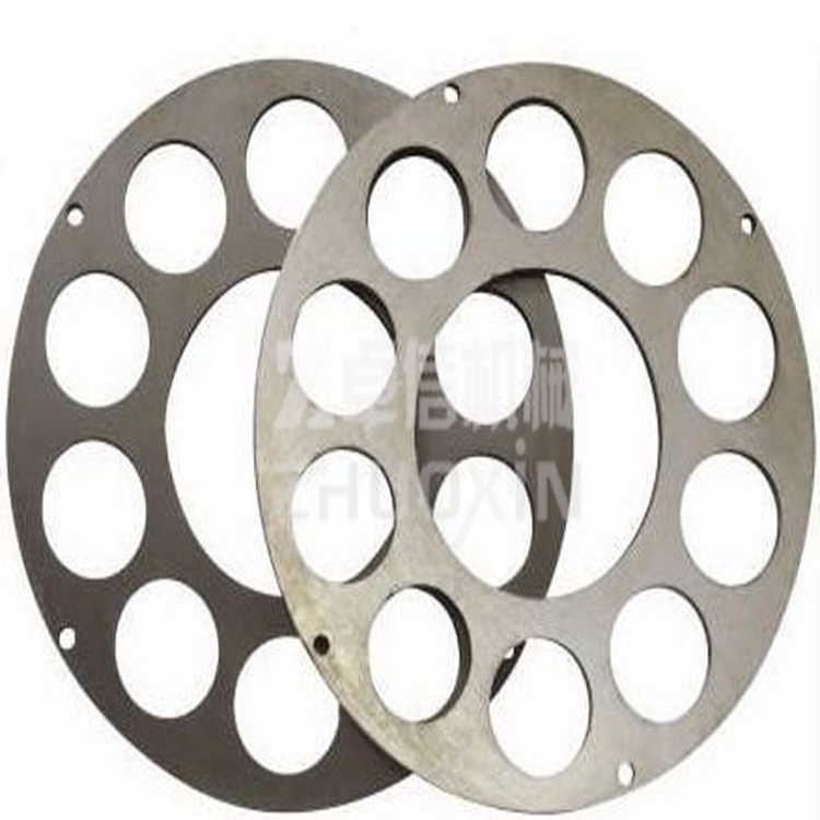 產(chǎn)品簡介:噴漿機鋼襯板作為噴漿機的易損件,所以使用是相當(dāng)廣泛的,每個噴漿機上都配有兩塊鋼襯板,和橡膠板一樣,兩個配套使用的,在圓形襯板外圈的孔為料孔,內(nèi)圈的孔為風(fēng)孔,各風(fēng)孔邊緣之間到各料孔邊緣之間的距離均不大于10毫米。