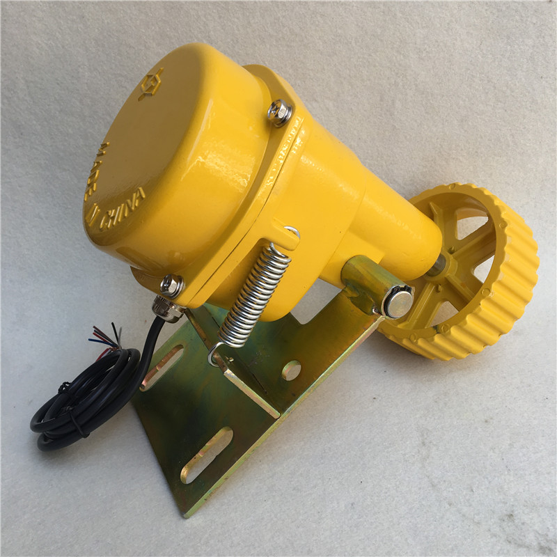本機(jī)用于帶式輸送機(jī)運(yùn)行中膠帶與主動(dòng)滾桶出現(xiàn)打滑(失速)故障?煞乐褂捎诖蚧斐傻膰(yán)重事故的發(fā)生。本打滑開(kāi)關(guān)還可以用于多條帶式輸送機(jī)的連鎖啟動(dòng)和停機(jī),低速抱閘或炒熟保護(hù)等,使現(xiàn)場(chǎng)操作簡(jiǎn)單化并提高了安全性。在鋼鐵、電力、煤礦及港口等有帶式輸送機(jī)的行業(yè)得到了廣泛的應(yīng)用。打滑開(kāi)關(guān)工作原理:速度檢測(cè)器水平安裝在上行膠帶和下行膠帶間的輸送機(jī)支架上,使出來(lái)與膠帶表面有一定的壓力防止發(fā)生觸輪跳動(dòng)而產(chǎn)生的誤動(dòng)作。速度檢測(cè)器無(wú)需工作電源即可工作,當(dāng)膠帶機(jī)運(yùn)行速度低于本產(chǎn)品的設(shè)定值時(shí),檢測(cè)器重的繼電器動(dòng)作輸出控制信號(hào),速度可任意調(diào)節(jié)。
