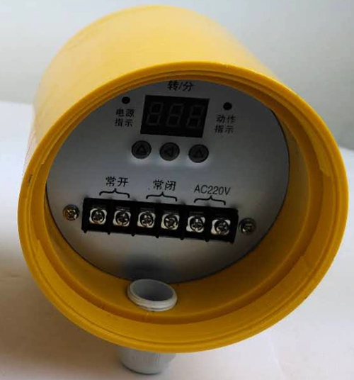 當觸輪隨膠帶機運行而旋轉時帶動機內的脈沖盤,在脈沖盤旋轉時引起的磁感應信號的變化輸入到速度傳感器的控制電路中,經電路放大、比較、整形后進行計數。其計數值與預置數比較,判斷膠帶的帶速,同時執(zhí)行電路輸出相應的開關信號。既:在達到低于打滑速度時執(zhí)行電路輸出相應的開關信號,使主機停機。本開關可調整速度值