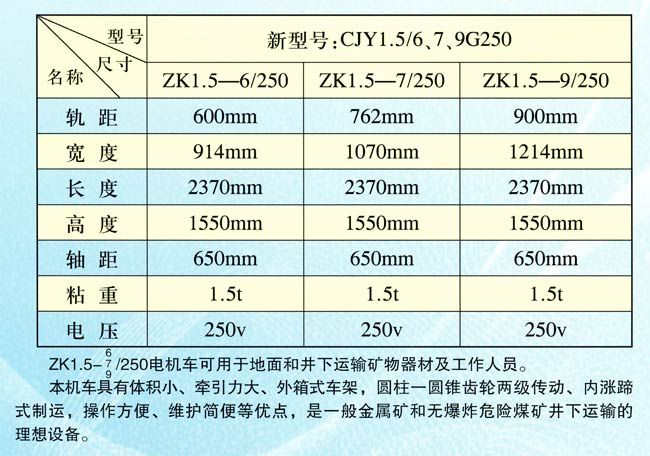 原型號(hào)ZK3-6、7、9/250-2型電機(jī)車主要技術(shù)參數(shù)