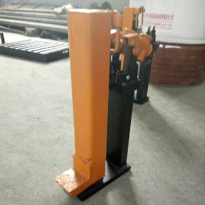 2、將液壓起道機側(cè)鉤橫向插入需要起道的位置,并將頂柱垂直于地面,將操縱桿插入撳手孔內(nèi),緩慢撳動操縱桿,使柱塞泵芯作往復(fù)運動,側(cè)鉤將帶動路軌向上運動達(dá)到起道目的,在被起路軌下墊上適當(dāng)?shù)哪緣K,緩慢打開回油閥,讓路軌下到木塊上,適度給機器頂柱或側(cè)鉤向下旋壓,讓機器復(fù)位,關(guān)閉回油閥,旋緊通氣閥,卸去起道機。